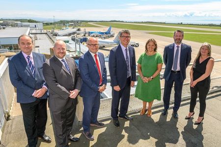 NATS has secured a ten year contract to provide air traffic and engineering services and expertise for Cardiff Airport. L-R:…